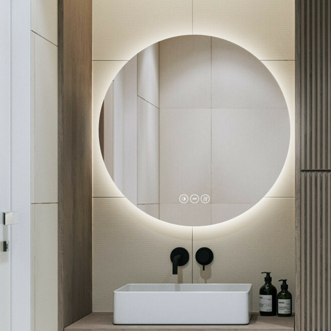 - Helst rektangulär, rund eller oval spegel över handfatet