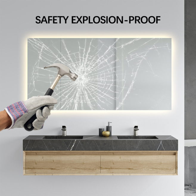 Denna fyrkantiga badrumsspegel med ljus ger ett varmt, naturligt sken som lyser upp utan att blända – perfekt för morgonrutiner, sminkning och rakning.