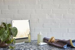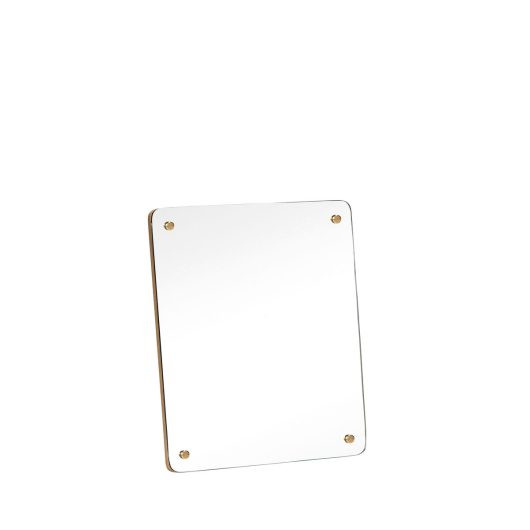Slimmad bordsspegel från Hübsch som snabbt blir ett måste på nattduksbordet eller i badrummet. Med sin rektangulära form och fristående konstruktion ger den en slimmad känsla som förstärks av de klassiga mässingsdetaljerna. Trädelarna är gjorda av FSC-certifierat trä, så du kan njuta av spegelbilden med gott samvete. Mått: