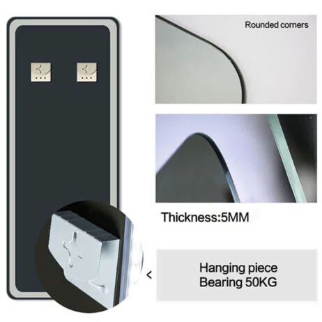 Denna moderna LED-spegel levereras med 5 mm spegelglas som är silver- och kopparfritt för ökad hållbarhet. Spegeln är dessutom antikross-behandlad, har slipade kanter och är behandlad mot korrosion, vilket gör den extra tålig i fuktiga miljöer.