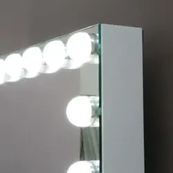 Den vita ramen i klassisk Hollywood-stil ger en exklusiv och vintageinspirerad känsla. Spegeln passar lika bra på sminkbordet, i sovrummet som i ett modernt badrum.