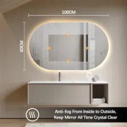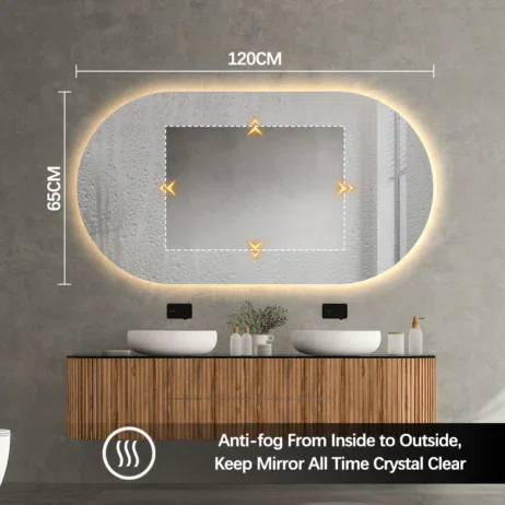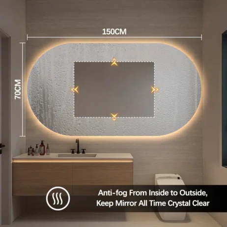 Den integrerade bakgrundsbelysningen skapar ett behagligt och jämnt ljus runt spegeln. Antidimfunktionen gör att spegeln alltid är redo att användas – utan att du behöver torka av den.