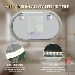 LED backlight – tänds och släcks via den strömbrytare, ett lamputtag eller den stickkontakt du ansluter spegeln till