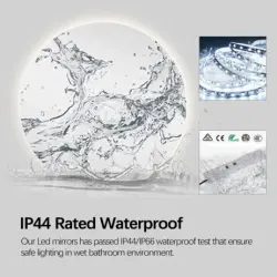 Spegeln har dessutom ett CRI-index ≥ 90, vilket betyder mycket hög färgåtergivning. CRI (Color Rendering Index) mäter hur korrekt ljuset återger färger på en skala från 0–100. Ju högre värde, desto bättre ljus. Det gör spegeln idealisk som sminkspegel och för precisionsarbete framför spegeln.