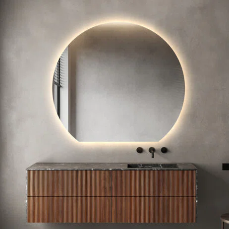Den integrerade LED-belysningen ger ett jämnt och behagligt ljus runt spegeln. Antidimfunktionen säkerställer att spegeln förblir klar även efter en varm dusch. Perfekt för hektiska morgnar. Den halvrunda formen skapar ett unikt och exklusivt uttryck som lyfter hela badrummet.