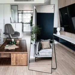 Den tunna aluminiumramen ger spegeln ett elegant och minimalistiskt utseende samtidigt som den är stabil och hållbar.