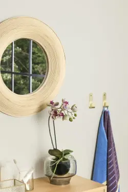 Vacker väggspegel från Hübsch som framhäver en naturlig känsla med sitt materialval. Spegelns ram är tillverkad i ljus bambu och blir en naturlig ögonfångare vart den än fastnar. Färgen, formen och materialet passar utmärkt in i skandinaviskt formspråk.