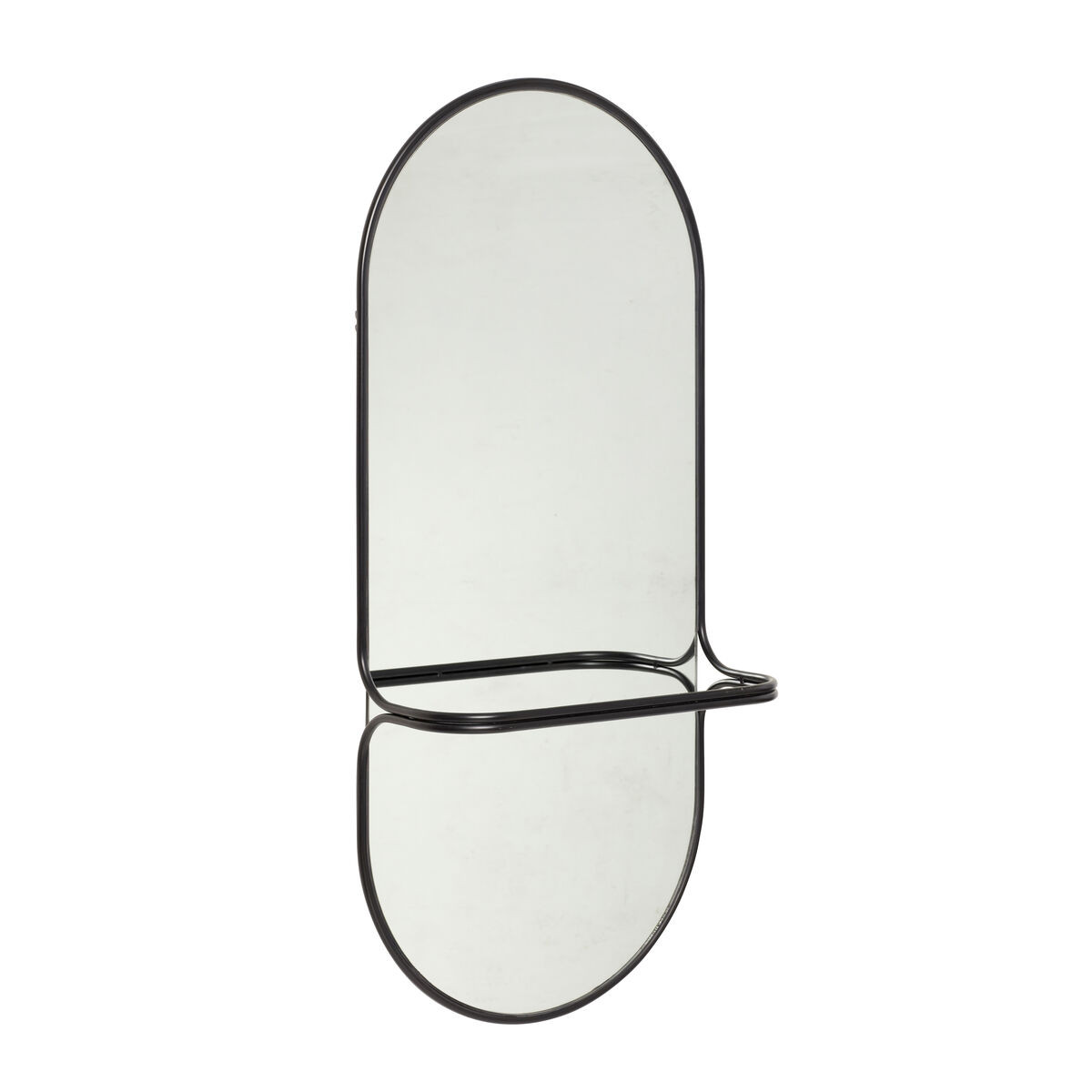 Smart utformad väggspegel från Hübsch med en svart ram som blir en unik detalj. Ramen följer inte bara runt spegelglaset på ett skyddande sätt, utan blir en praktisk förvaringsplats för handdukar eller mattor. Fungerar lika fint i badrummet som i vardagsrummet.