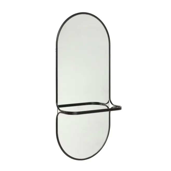 Smart utformad väggspegel från Hübsch med en svart ram som blir en unik detalj. Ramen följer inte bara runt spegelglaset på ett skyddande sätt, utan blir en praktisk förvaringsplats för handdukar eller mattor. Fungerar lika fint i badrummet som i vardagsrummet. Mått: