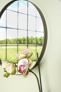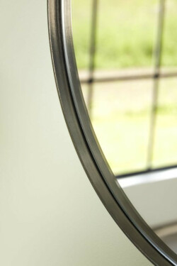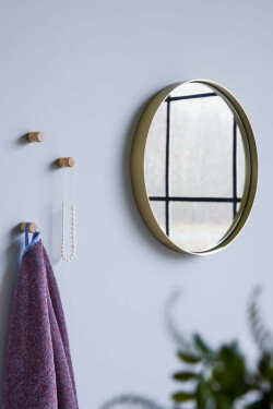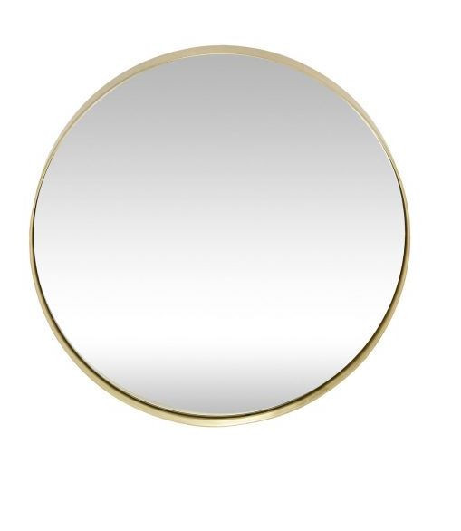 Minimalistisk väggspegel från Hübsch med ram av metall, antingen i borstad nickel eller mässing. Spegeln har en design som påminner om 60-talets interiördesign Diameter: 40cm.