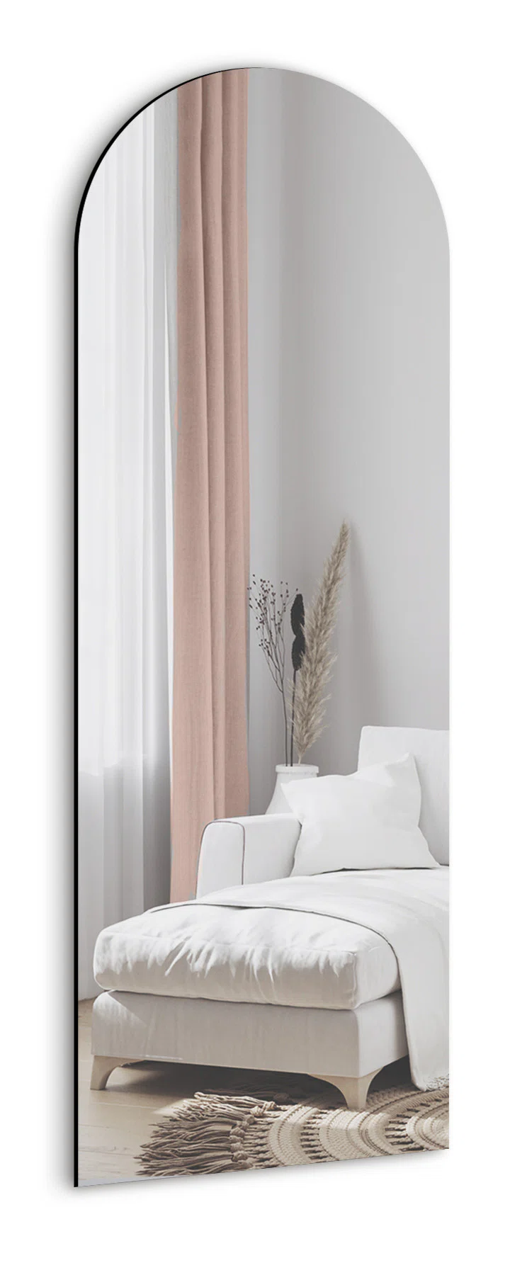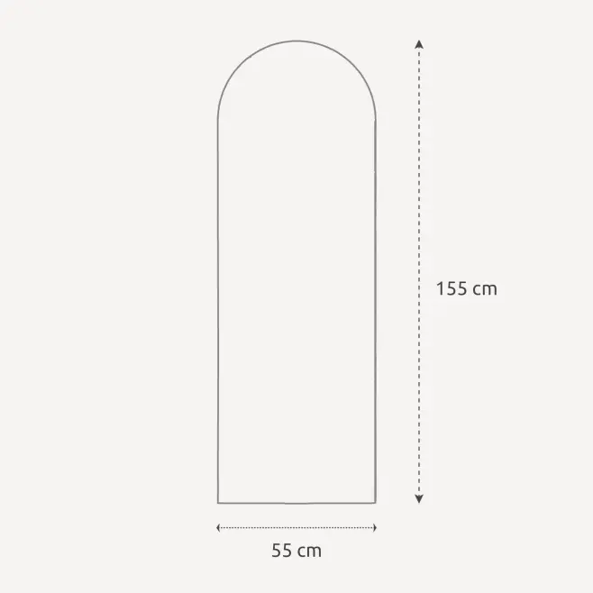 Långsmal väggspegel från INCADO med en klassisk bågad form i spegelns topp, helt utan ram runt glaset. Den tidlösa formen gör att spegeln fungerar i alla hem. Spegeln har fabriksmonterade väggbeslag för enkel upphängning.