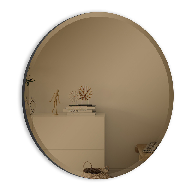 Rund bronsspegel med facettslipning från INCADO, med diameter på 80cm.