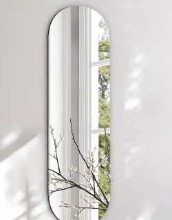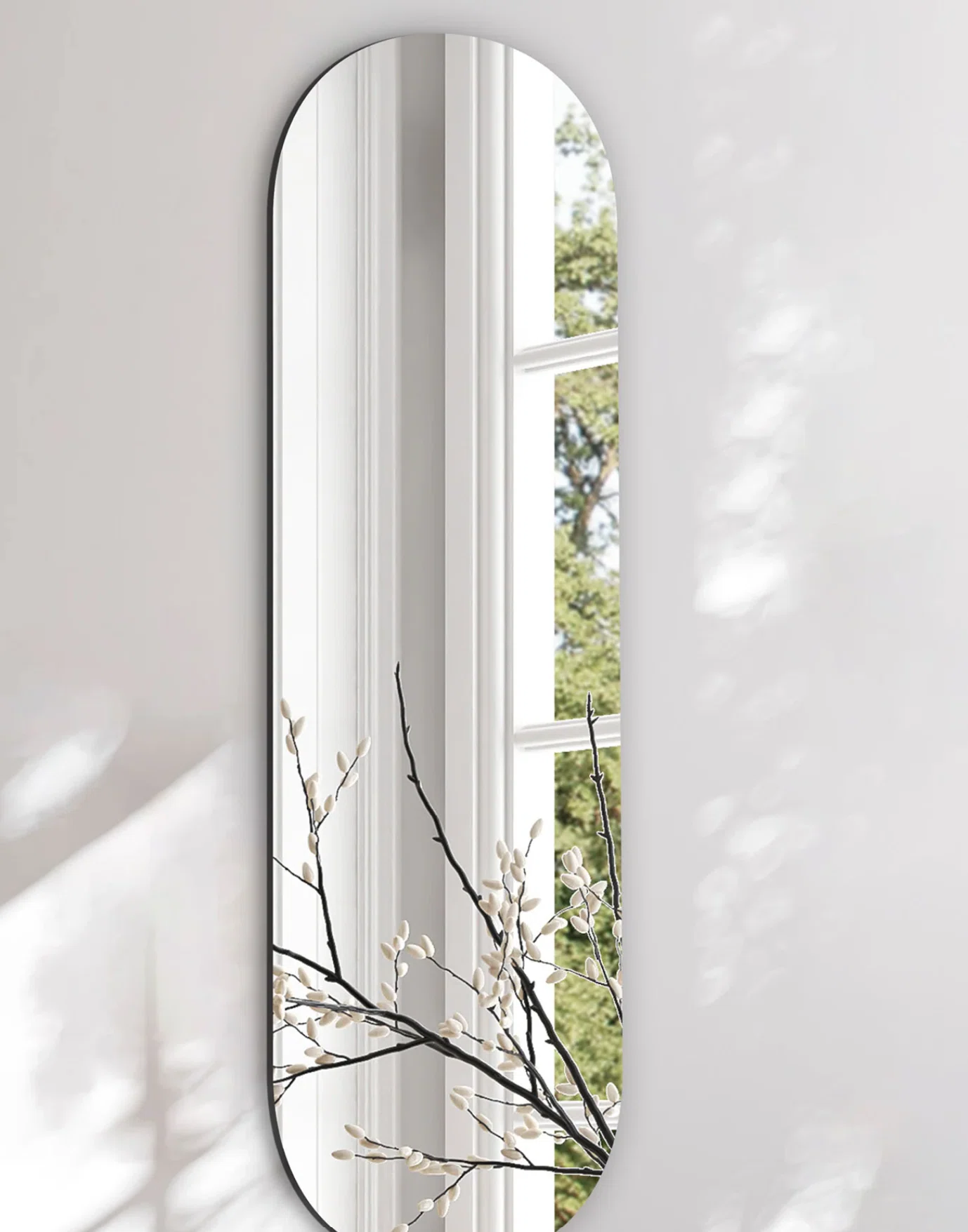 Den avlånga formen ger en helkroppsspegel, vilket gör den både praktisk och stilren. Perfekt för mindre eller smala utrymmen där du vill skapa en känsla av mer rymd och ljus.