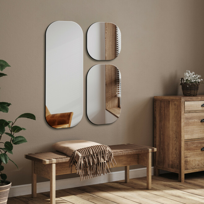 Oval Trio är en samling speglar från Incado med ett tidlöst formspråk. Settet innehåller tre speglar i tre olika storlekar som tillsammans gör en klassisk form lite mer levande. Speglarna har skruvbeslag på baksidan vilket möjliggör hängning både horisontellt och vertikalt.