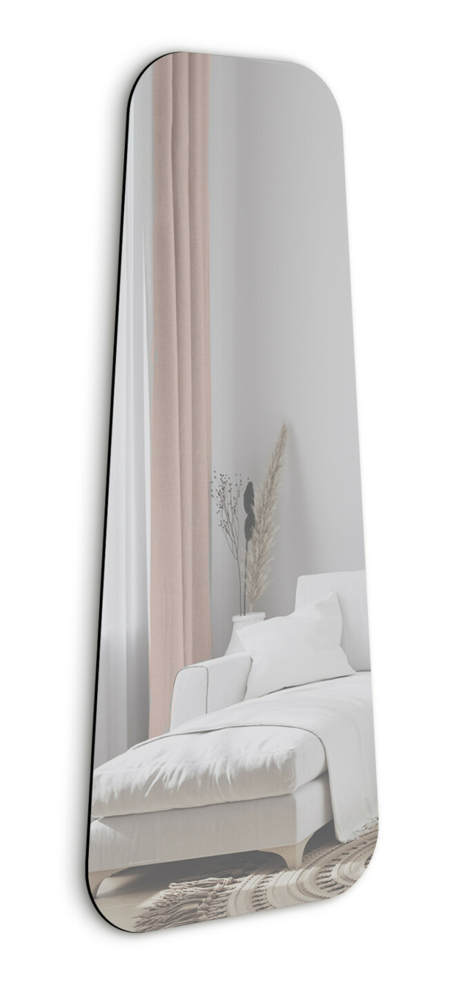 Trapetsformad avlång spegel från INCADO. Just den geometriska formen är praktisk men ovanlig bland heminredningsdetaljer, vilket gör att spegeln inger ett unikt inslag till de allra flesta hem. Spegeln har fyra fabriksmonterade väggfästen, vilket möjliggör hängning såväl vertikalt som horisontellt - vilket ytterligare möjliggör kreativa placeringar av spegeln.