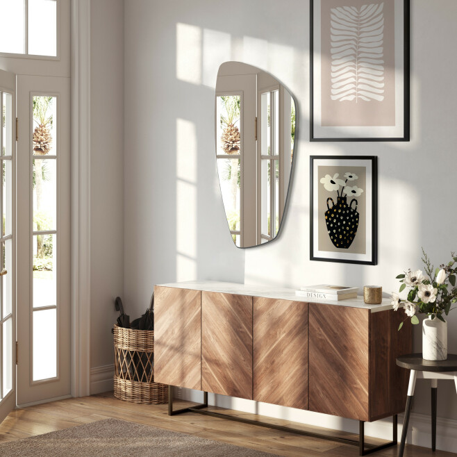 Rejäl spegel från INCADO som lyser upp såväl hall, garderob och vardagsrum. Med sina organiska former skänker spegeln ett unikt intryck till rummet. Förutom de estetiska fördelarna ger speglar även en känsla av att rummet är större. De fabriksmonterade väggfästena gör att spegeln kan monteras ståendes eller liggandes.