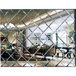 Spegelvägg med kvadratiska spegelskivor i kristallklart silverfärgat glas. Ett enkelt sätt att skapa en stilfull inredning där ljuset naturligt återspeglas och förstärker belysningen. Speglarna kommer i set om kvadrater (30x30 cm) och trekanter (30x42,4 cm) som bildar större partier rutor. Antalet bitar skiftar efter den totala storleken som ska uppnås. Bitarna kan fritt monteras antingen vertikalt eller horisontellt och limmas på plats med monteringslim.