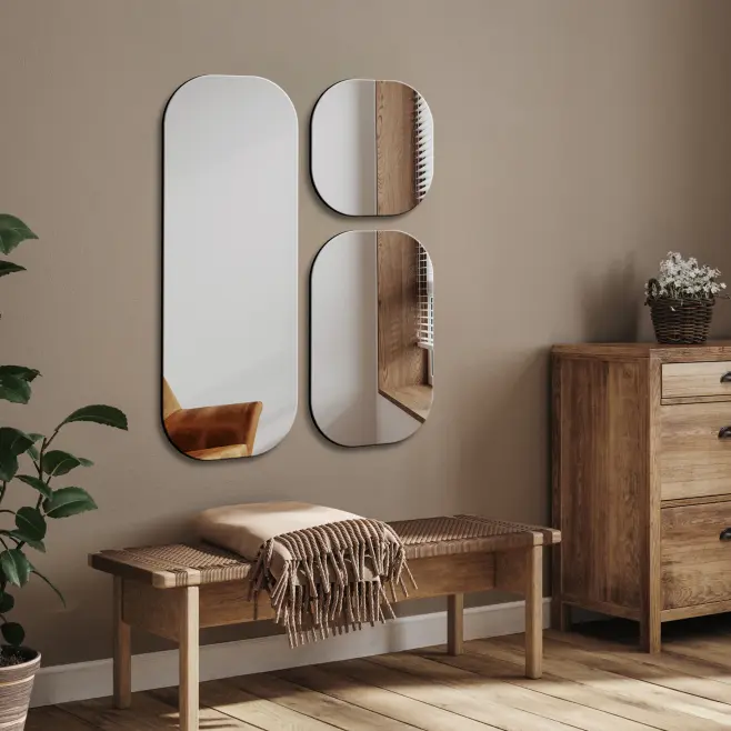 I en smal hall kan en helkroppsspegel längs ena väggen skapa en känsla av djup och göra att passagen känns bredare. I ett litet sovrum kan en stor spegel lutad mot väggen ge både funktion och en elegant, avslappnad stil.