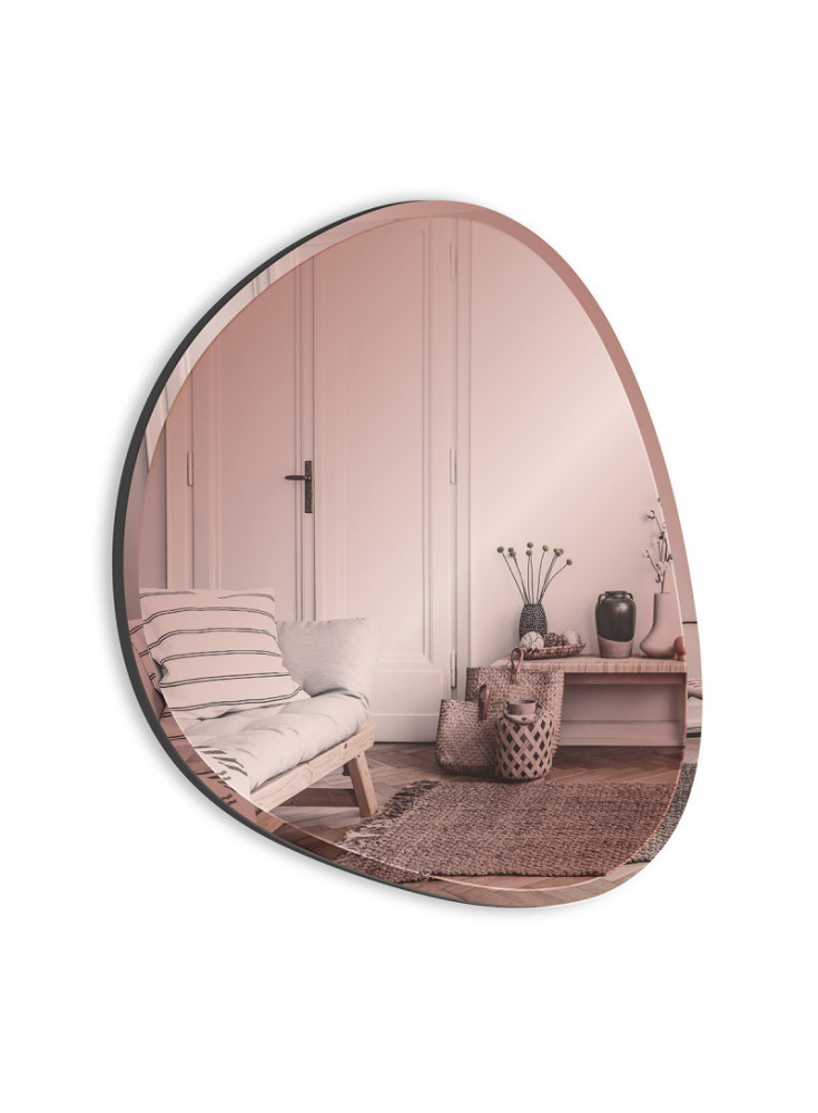 I vårt sortiment av utgående speglar hittar du unika modeller i asymmetriska former och med olika färger på glaset, vilket ger en modern och trendig känsla till ditt hem. Oavsett om du föredrar en stilren spegel med rökfärgat glas, en mjuk organiskt formad spegel eller en spegel med färgat glas som tillför karaktär, finns det något för dig.